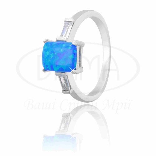 Каблучка срібна з синім прямокутним опалом та цирконом. Срібло 925 проби, покрите родієм. В наборі присутні Каблучка, сережки та підвіска.