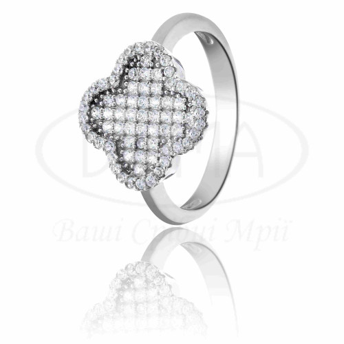Каблучка срібна з Цирконом, виконана у формі "Клевер". Срібло 925 проби, покрите родієм. Комплект складається з каблучки, підвіски та сережок. Розмір клевера 13,5 мм.