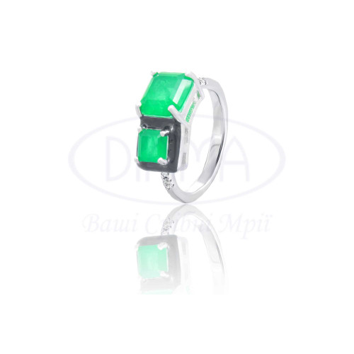 Срібна каблучка з зеленим, білим цирконом та чорною емаллю. Срібло 925 проби, покрите родієм. В наборі присутні каблучка, сережки та підвіска.