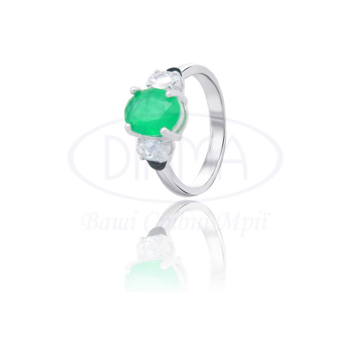 Срібна каблучка з зеленим та білим цирконом з чорною емаллю. Срібло 925 проби, покрите родієм. В наборі присутні каблучка, сережки та підвіска.