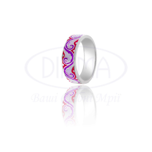 Срібна каблучка з кольоровою емаллю. Срібло 925 проби, покрите родієм. В комплекті каблучка, сережки та підвіска. Ширина каблучки 6 мм.