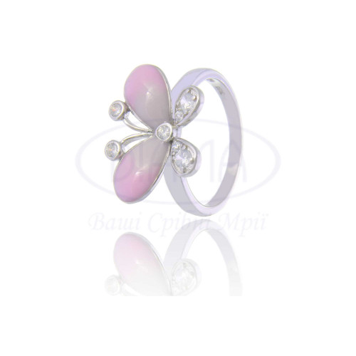 Срібна каблучка з кольоровою емаллю та білим цирконом. Срібло 925 проби, покрите родієм. До комплекту входить каблучка, підвіска та сережки.