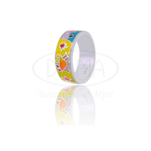 Срібна каблучка з кольоровою емаллю. Срібло 925 проби, покрите родієм. В наборі каблучка, підвіска та сережки.