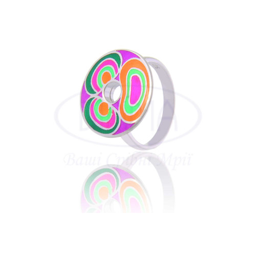 Срібна каблучка з кольоровою емаллю. Срібло 925 проби, покрите родієм. До комплекту входить каблучка, підвіска та сережки.