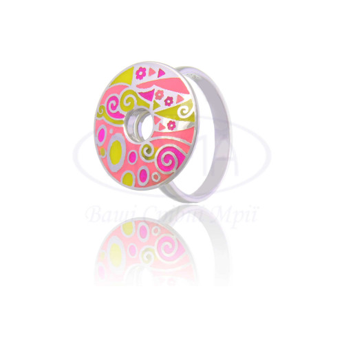 Срібна каблучка з кольоровою емаллю. Срібло 925 проби, покрите родієм. До комплекту входить каблучка, підвіска та сережки.