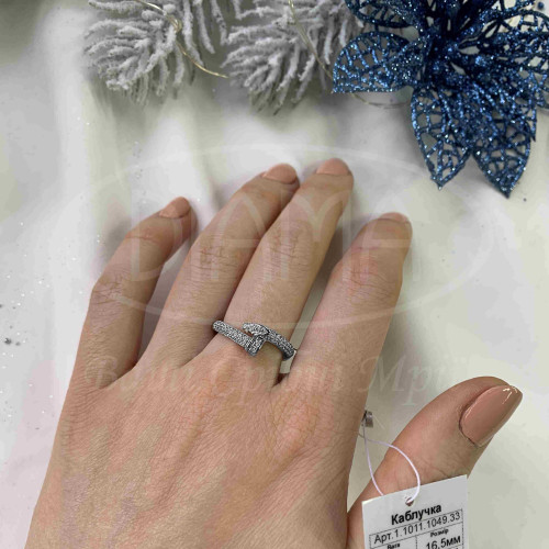 Срібна каблучка у формі цвяха з білим цирконом. Срібло 925 проби, покрите родієм. Розмір головного елементу каблучки (шляпа) 4,5 мм.