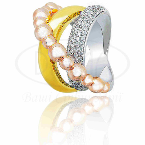 Срібна каблучка з білим цирконом. Срібло 925 проби, покрите родієм, жовтою та червоною позолотою.