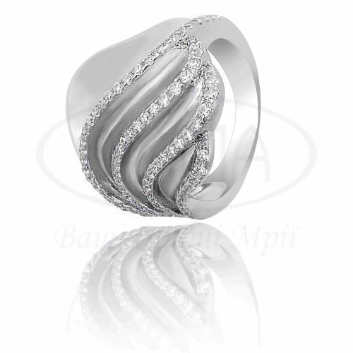 Срібна каблучка з білим цирконом. Срібло 925 проби, покрите родієм.