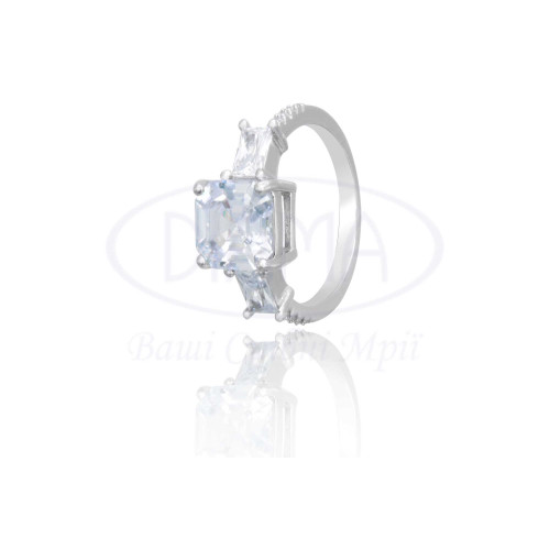 Каблучка срібна з білим цирконом. Срібло 925 проби, покрите родієм. В комплекті каблучка, підвіска та сережки. Розмір головного елемента 8 мм.