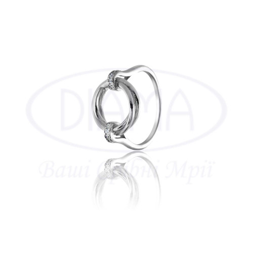 Каблучка срібна з білим цирконом у формі круга. Срібло 925 проби, покрите родієм. Розмір головного елементу каблучки 12 мм. В наборі є каблучка, сережки та підвіска