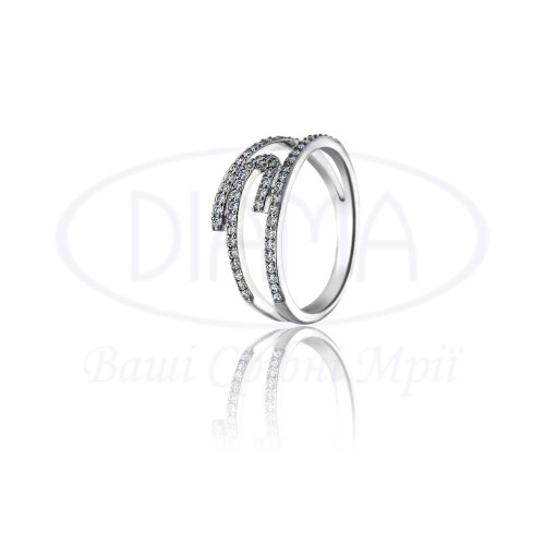 Каблучка срібна з білим цирконом у формі скріпки. Срібло 925 проби, покрите родієм. В наборі є каблучка, сережки та підвіска