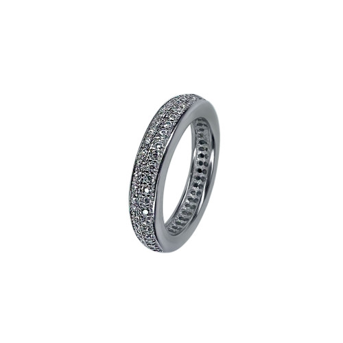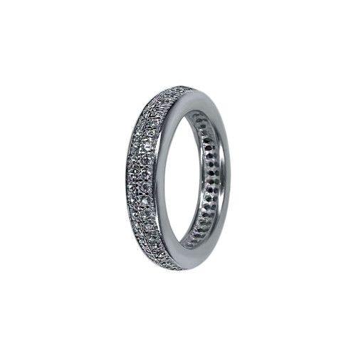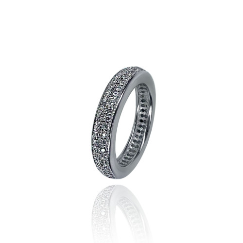 Срібна каблучка з білим цирконом, що розташований по всьому колу. Срібло 925 проби, покрите родієм. Ширина каблучки 4,1 мм.