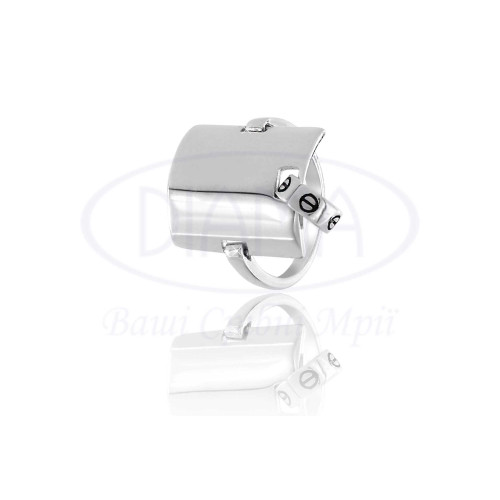 Каблучка срібна з квадратною срібною пластиною та кільцем. Срібло 925 проби, покрите родієм. В комплекті каблучка та сережки.