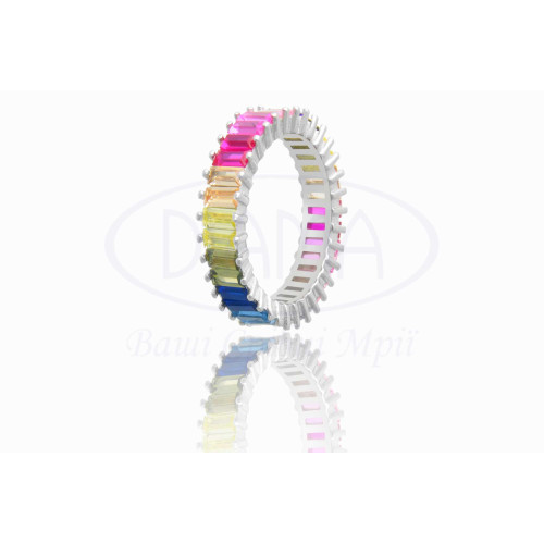 Каблучка срібна з різнокольоровим цирконом. Срібло 925 проби, покрите родієм. В комплекті каблучка, підвіска та сережки.