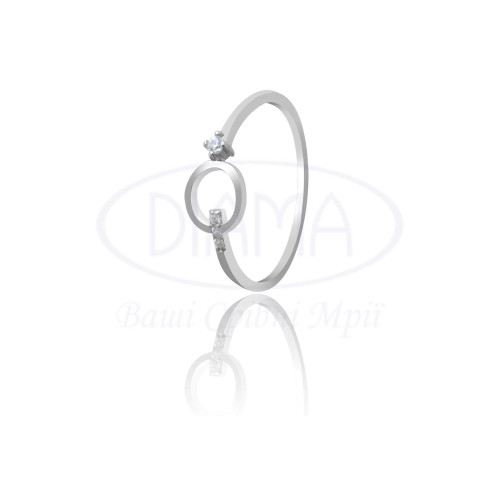 Каблучка срібна з кругом та білим цирконом. Срібло 925 проби, покрите родієм.