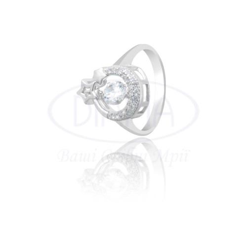 Каблучка срібна з зіркою та білим цирконом. Срібло 925 проби, покрите родієм. В наборі є каблучка, сережки та підвіска