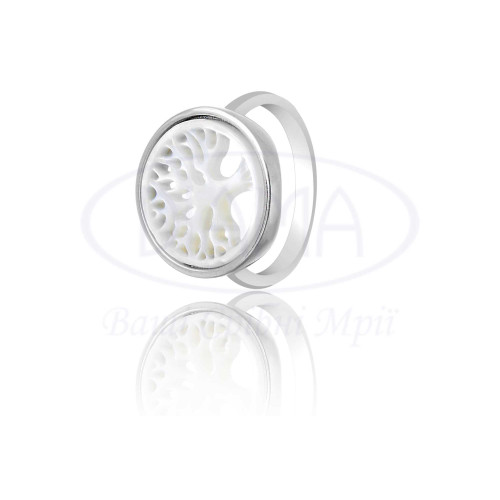 Срібна каблучка з білим перламутром в формі дерева. Срібло 925 проби, покрите родієм. В наборі присутні каблучка та браслет.