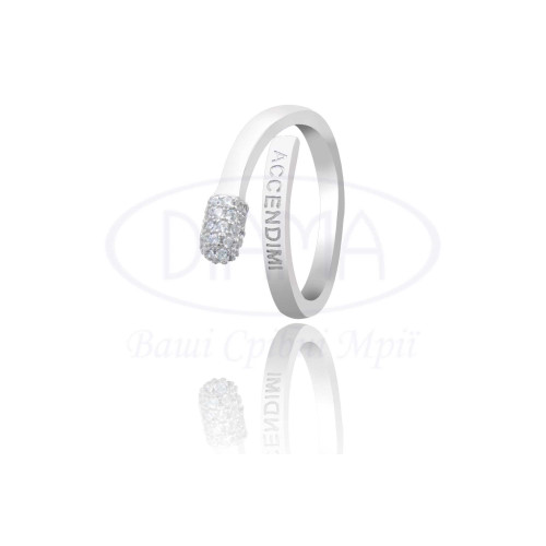 Срібна каблучка в формі сірника з білим цирконом. Срібло 925 проби, покрите родієм. В комплекті є каблучка, кольє та сережки.