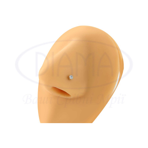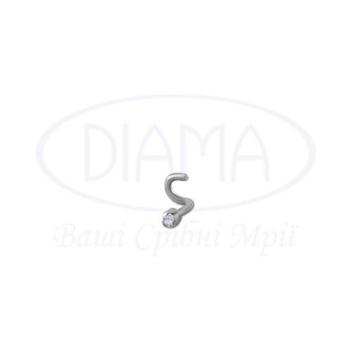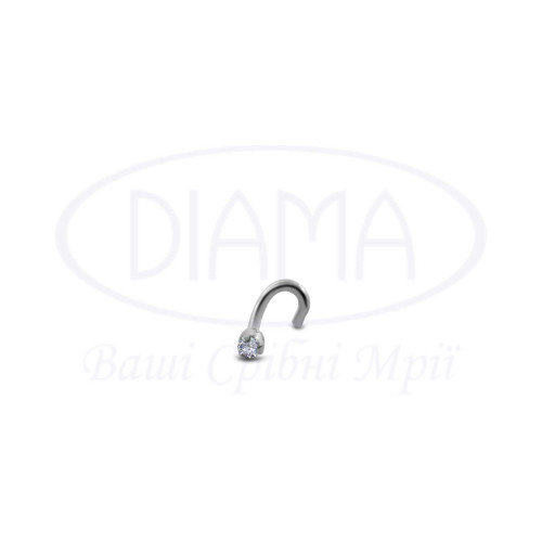 Пірсинг срібний у ніс з білим цирконом. Срібло 925 проби, без покриття. Розмір камня 2,5 мм.