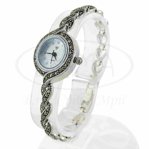 Годинник зі срібла з марказитом. Срібло 925 проби.