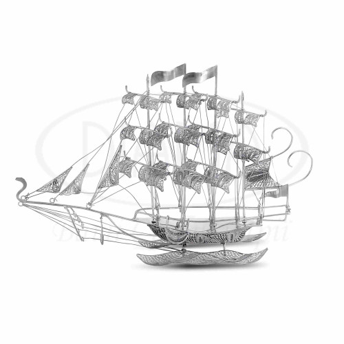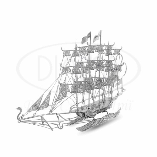 Статуетка срібна у формі корабля з відкритими вітрилами, з однієї сторони якого розташована шлюбка. Також на вітрилах зображенні візерунки які попередньо виконані у стилі філігрань. Срібло 925 проби, покрите родієм. Висота корабля 120 мм, довжина 175 мм, ширина 30 мм.