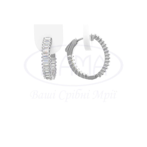 Сережки срібні з білим цирконом. Срібло 925 проби, покрите родієм. Товщіна 4 мм, діаметр 20 мм.
