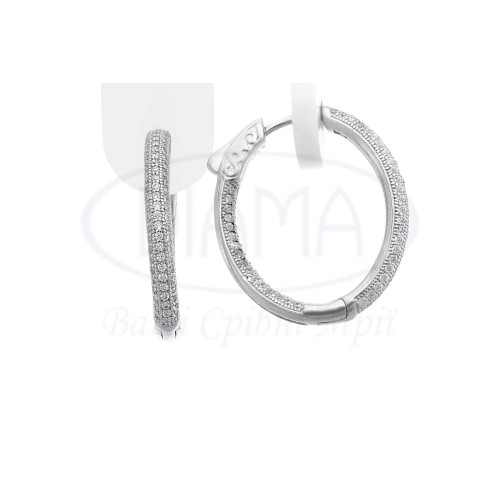 Сережки срібні з білим цирконом. Срібло 925 проби, покрите родієм. Розмір сережки 25.5 мм * 23 мм, ширина 3 мм.