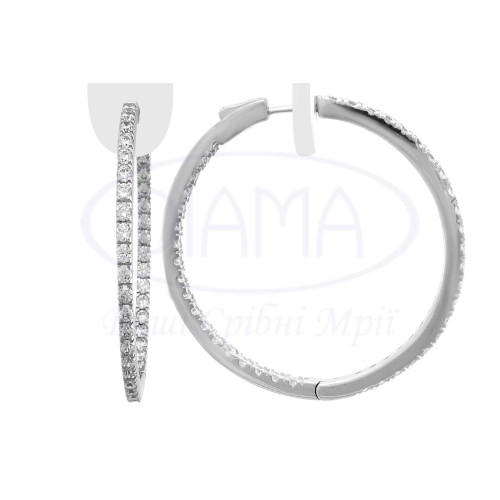 Сережки срібні з білим цирконом. Срібло 925 проби, покрите родієм. Розмір сережки 45 мм, ширина 2.5 мм.