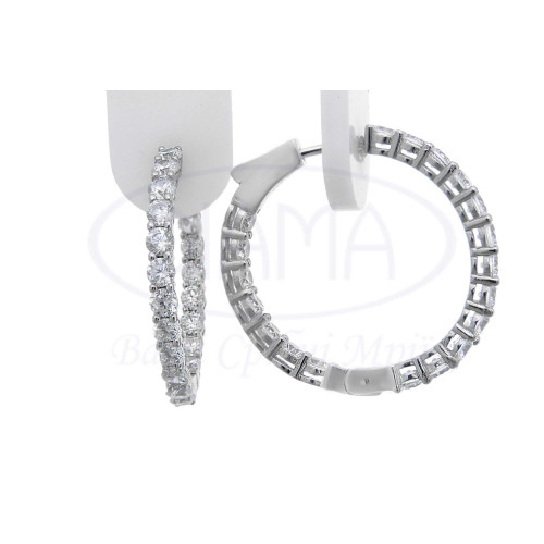 Срібні сережки з білим цирконом. Срібло 925 проби, покрите родієм. Розмір сережки 29 мм, ширина 3 мм.