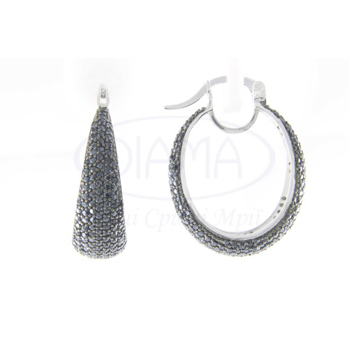 Срібні сережки "Конго" з чорним цирконом. Срібло 925 проби, покрите родієм.