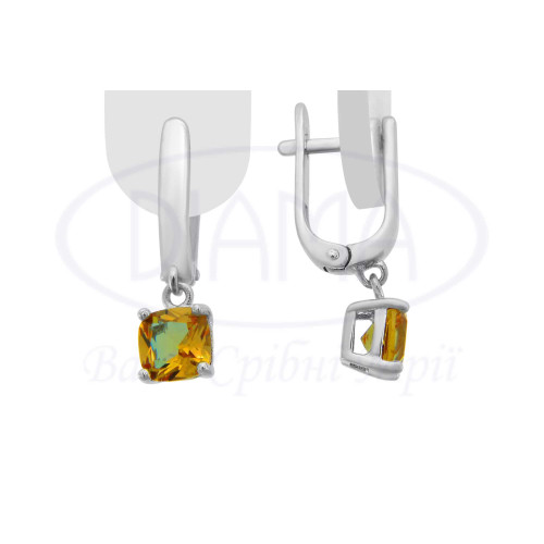 Сережки срібні з квадратним султанітом, який змінює відтінок при різному освітленні до зеленого, жовтого, малинового або яскраво помаранчевого. Розмір - 7 мм. Срібло 925 проби, покрите родієм. В комплекті каблучка, підвіска та сережки.