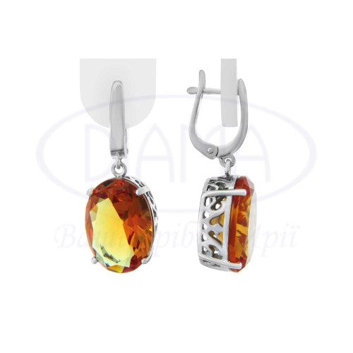 Сережки срібні в формі овалу. Срібло 925 проби, покрите родієм. Вставка Султаніт (камінь, який змінює свій колір в залежності від освітлення). Може бути зеленим, жовтим, малиновим або яскраво помаранчевим. В наборі присутні каблучка, сережки та підвіска.