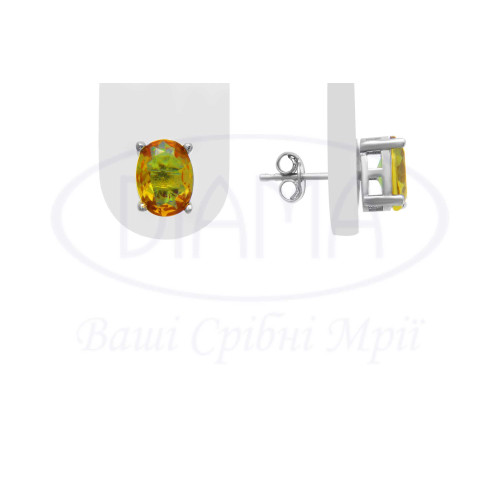 Сережки срібні з овальним султанітом, якому властиво змінювати відтінок при різному освітленні до зеленого, жовтого, малинового або яскраво помаранчевого. Срібло 925 проби, покрите родієм. Розмір камня 8×6 мм.