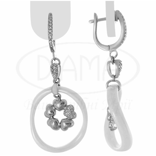 Сережки срібні з білою керамікою та білим цирконом. Срібло 925 проби, покрите родієм.