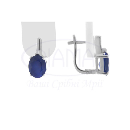 Сережки зі срібла з сапфіром у формі овалу. Срібло 925 проби, покрите родієм. В наборі також є каблучка та підвіска.