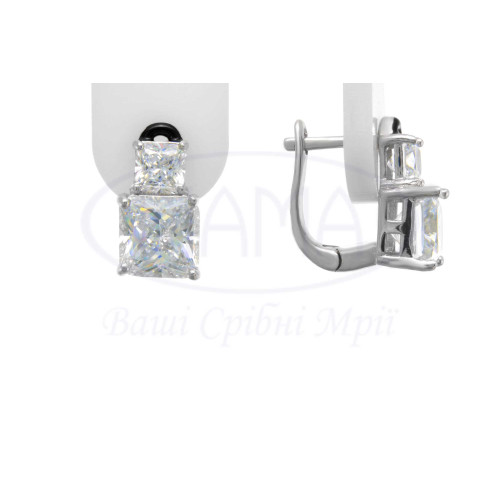 Сережки срібні з білим цирконом та чорною емаллю. Срібло 925 проби, покрите родієм. В наборі присутні каблучка, сережки та підвіска.
