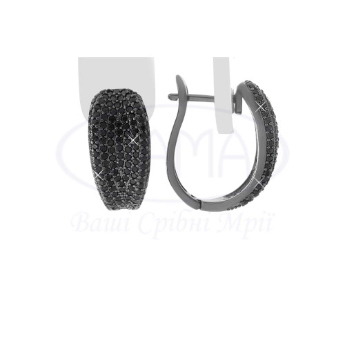 Сережки срібні з чорним цирконом. Срібло 925 проби, покрите родієм чорним. Висота сережки 25 мм, а ширина 11мм.