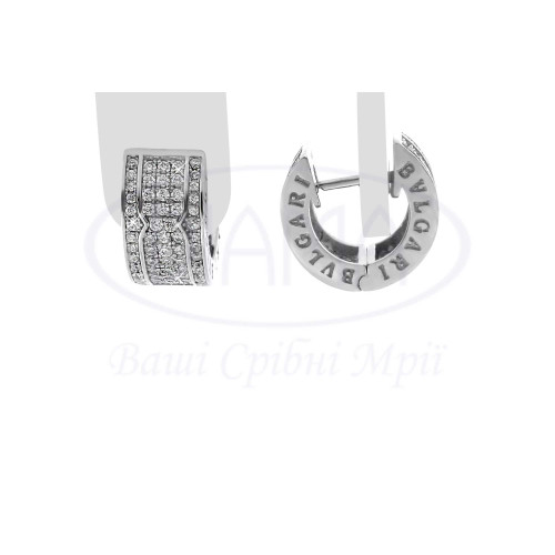 Сережки срібні з білим цирконом у стилі відомого бренду. Срібло 925 проби, покрите родієм. Ширина сережки 9 мм.,висота 16 мм.