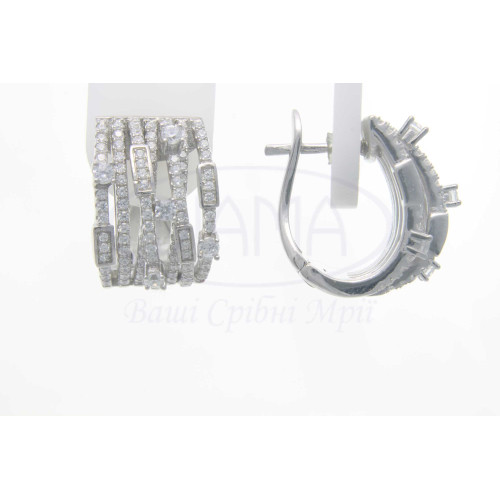 Срібні сережки з білим цирконом. Срібло 925 проби, покрите родієм. В наборі каблучка та сережки.