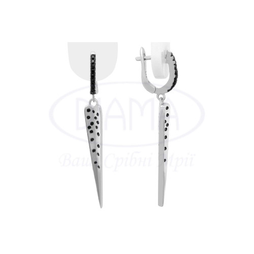 Срібні сережки з чорним цирконом. Срібло 925 проби, покрите родієм.