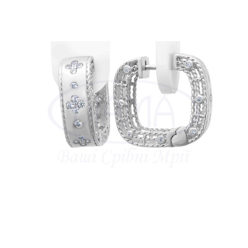 Срібні сережки з білим цирконом. Срібло 925 проби, покрите родієм. В наборі присутні каблучка та сережки.