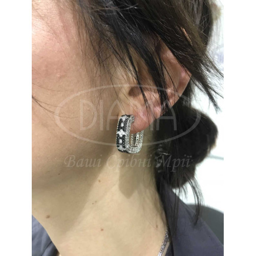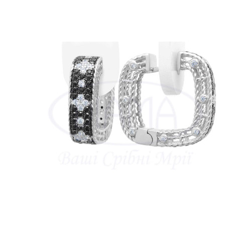 Срібні сережки з чорним та білим цирконом. Срібло 925 проби, покрите родієм. В наборі присутні каблучка та сережки.