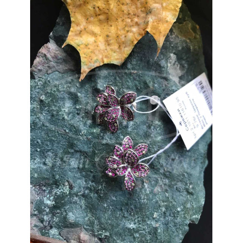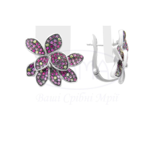 Срібні сережки з червоним, рожевим та жовтим цирконом. Срібло 925 проби, покрите родієм.
