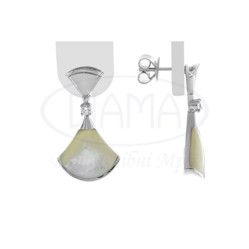 Срібні сережки з білим Перламутром та білим цирконом. Срібло 925 проби, покрите родієм. Розмір сережки 16 мм.