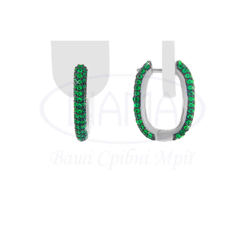 Срібні сережки з зеленим цирконом. Срібло 925 проби, покрите родієм. Висота сережок 20 мм, ширина 3 мм