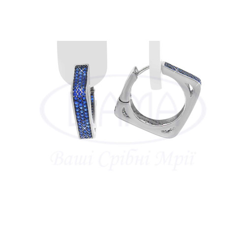 Срібні сережки в формі ромба з синім цирконом. Срібло 925 проби, покрите родієм. Ромб 25*22 мм, ширина 5 мм