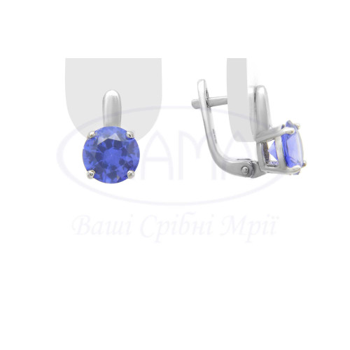Срібні сережки з круглим Танзанітом. Срібло 925 проби, покрите родієм. В наборі присутні каблучка, сережки та підвіска. Розмір головного елементу 8 мм.