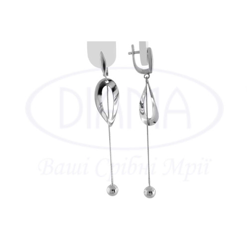 Сережки срібні з овалом і кулькою. Срібло 925 проби, покрите родієм. Розмір овалу 14*24 мм, кульки 6 мм.