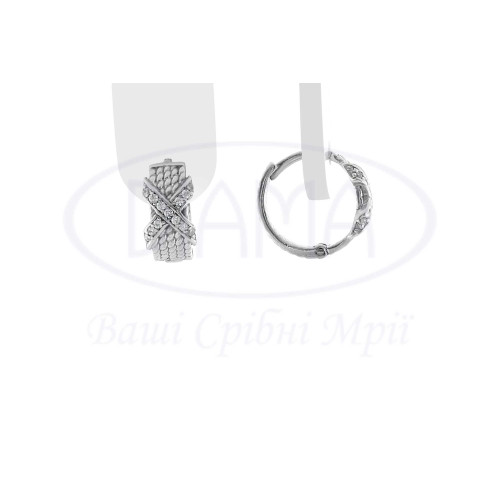 Сережки срібні з білим цирконом. Срібло 925 проби, покрите родієм. Діаметр сережки 15 мм. ширина 7 мм. У наборі сережки та каблучка.