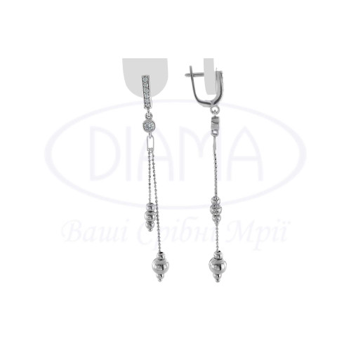 Сережки срібні з білим цирконом у формі кульок. Срібло 925 проби, покрите родієм. Діаметр кульок 3 мм, 4 мм. та 6 мм.